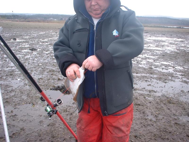Sunday morning saw us arrive at the Station Road car park, Ballykelly, and my first thoughts turned to the long walk ahead of us. It was a wise decision to cut back on the mountain of tackle I usually force myself to carry. It was great to see this part of the Foyle estuary again, as the memories of previous trips came flooding back. Standing at the waters edge, it positively “screams” Flounder. The shallow water and muddy sea- bed strewn with gravel, stones and shingle, along with deeper lagoons and mussel beds are all great Flounder clues. There is also the obligatory fresh water stream meandering across the beach, usually a good fish- attracting feature. We were soon baited up and fishing, but with little success over the first couple of hours. This is not unusual for this venue, and I recalled that on the previous trip I had to roam about in search of the fish, rather than wait for them to come to me. Another good reason for travelling light!