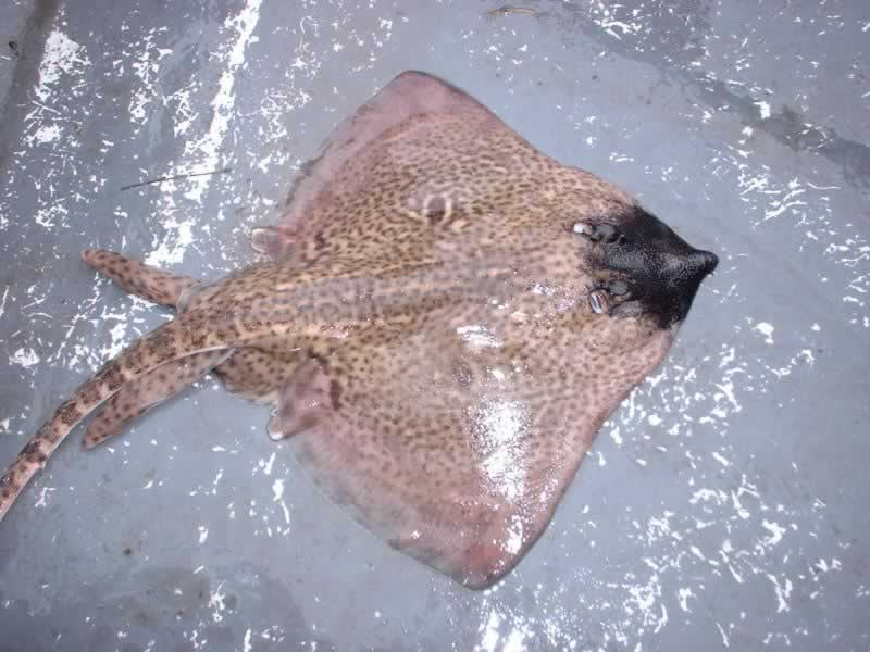 As the tides were not quite right for the Tope mark, a decision was made to anchor on the edge of the main channel and investigate what smaller species were present. Once the anchor had set in approximately thirty feet of water, I hung an onion bag of rubby dubby over the gunnels, to send a large scent trail down tide and hopefully attract any nearby predators to the hook-baits. With one-rod set up for downtide tactics, and another cast uptide, it was not long before Dogfish and Thornback Rays made an appearance. The rays in particular seemed to cue up to be caught and were superb sport on light uptide gear. An interesting point regarding the Thornbacks was that about a quarter of all the rays caught on this trip had unusual colourings that I have not seen anywhere else in Ireland. These included black patches around the nose area and elongated blotches on the wings. I sent some detailed photographs to Ali Hood of the Shark Trust organisation based in Plymouth. The Trust has a vast amount of information on skate, sharks and rays around our coast and she has passed the pictures on to a ray expert to determine if it is some kind of pigment mutation.