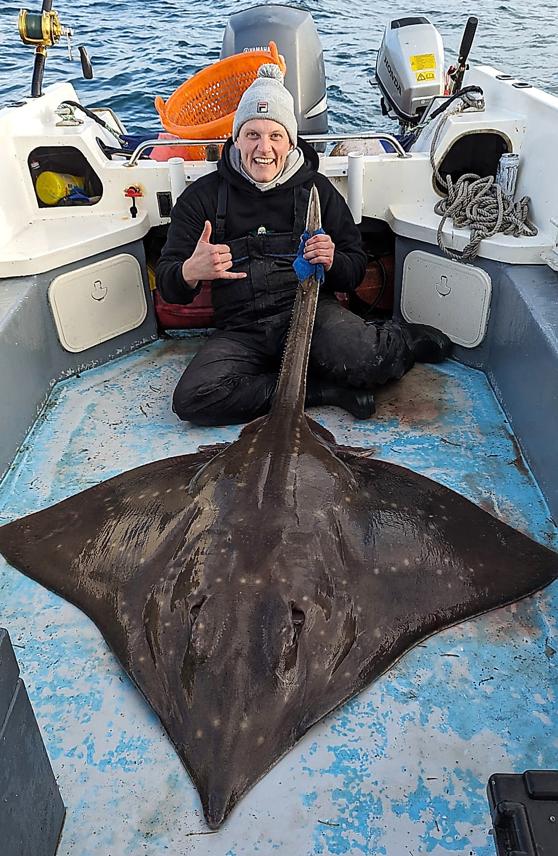 As suspected, as the Skate broke the surface, the leader line had wrapped around one of the wings, so basically it felt like I had been pulling a boat drogue up from the sea bed. But we got there eventually, and a Male this time, in and around 130-140lbs. Me? Knackered but absolutely delighted.