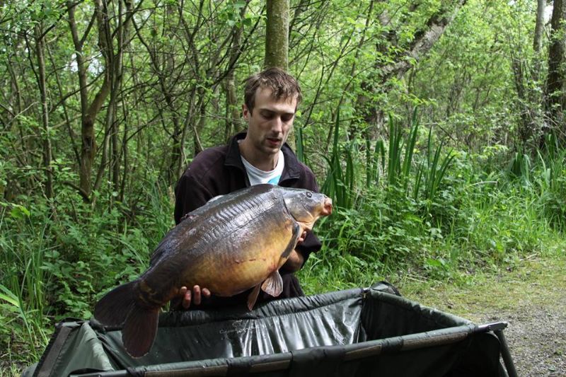 Eventually Jack and I slid the fish from the net in the water into the floating sling and when we lifted her up, could not believe the weight. Using a Nash Carp Cradle, one of the best pieces of kit I own, we stuck a nail in a tree and hung the scales up to get a perfect weight. She weighed in at 30lb 0oz, taken on the 17th of May, 2014. I named her Ryan’s fish and she was the nicest looking Carp I have ever caught. She just had so much character, you could just see the age in her.